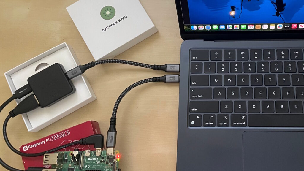 - Connects to your Raspberry Pi via USB (keyboard/mouse emulation)
